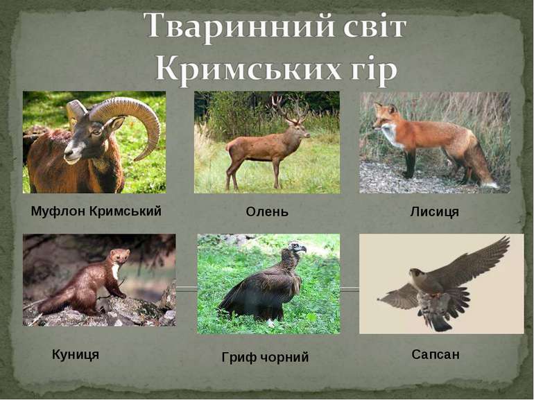 Кримські гори — домівка для кількох унікальних ссавців і птахів, які адаптувалися до складного рельєфу. Ось деякі з них: