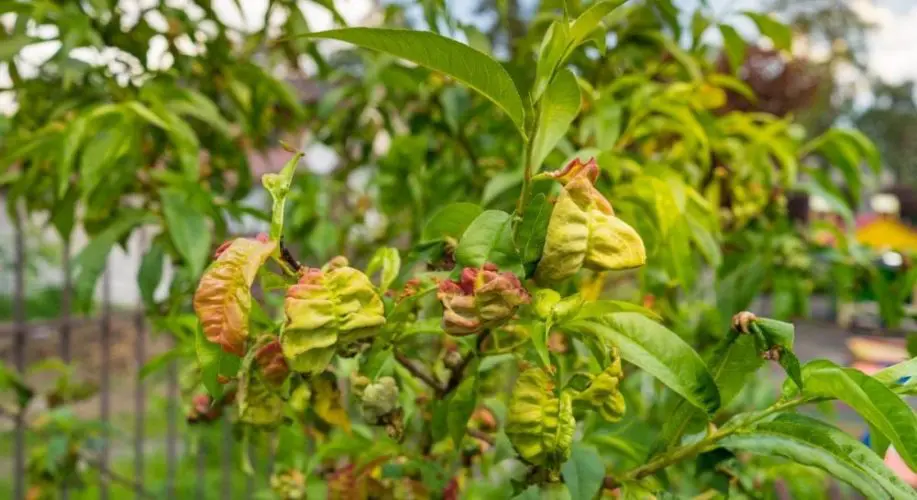 Причини та симптоми кучерявості листя персика