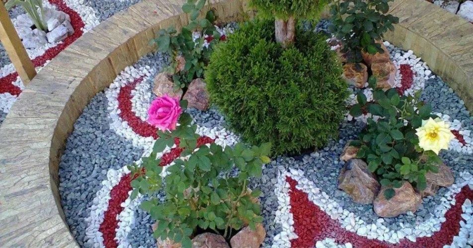 Ці матеріали перетворюють клумбу на сучасний арт-об’єкт, де догляд мінімальний – лише пилососом для листя раз на сезон.