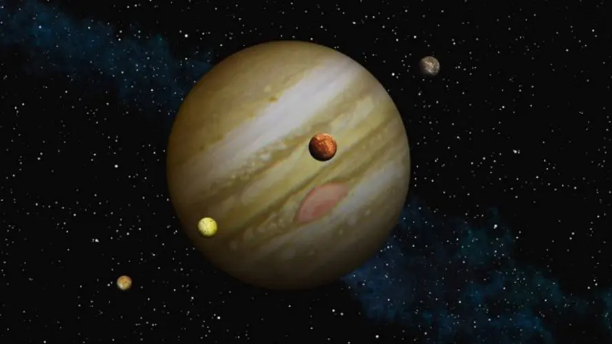 Галілеєві супутники – це Іо, Європа, Ганімед і Каллісто, чотири найбільші з понад 90 відомих місяців Юпітера. Їх відкрив Галілео Галілей, коли направив свій телескоп на газового гіганта й помітив чотири “зірки”, що рухалися навколо нього. Це стало першим доказом того, що не все в космосі обертається навколо Землі, підірвавши геоцентричну модель світу.