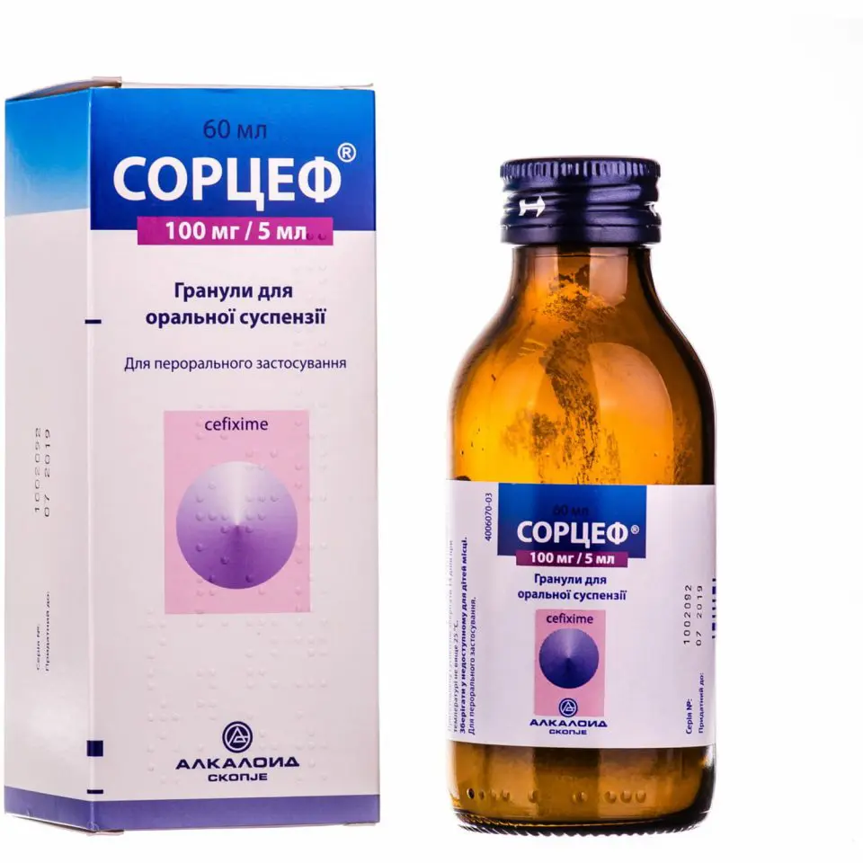 Сорцеф – це цефіксим у зручній формі: таблетки по 400 мг для дорослих чи гранули для суспензії (100 мг/5 мл) для дітей. Виробник Алкалоїд з Македонії гарантує стабільну біодоступність – 50% всмоктується незалежно від їжі, досягаючи піку в крові за 3-4 години. Він стійкий до бета-лактамаз, тому справляється з резистентними штамами, які ігнорують ампіцилін.
