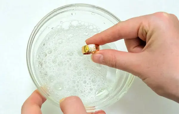 Замочування — це високоефективний метод чищення, який дозволяє змішати прикраси з м’яким шипучим засобом для очищення. Метод пропонує занурити прикраси в спеціальний розчин, такий як мильний або содовий. Занурюйте їх у розчин на 10-20 хвилин, щоб бруд розм’як повія. Далі м’яка щітка дозволить дбайливо видалити залишки забруднення.