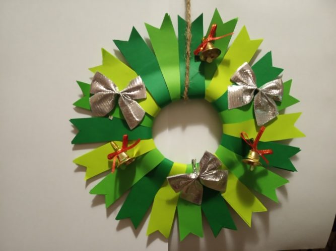 - Прикраси (ялинкові кулі, сніжинки з паперу).