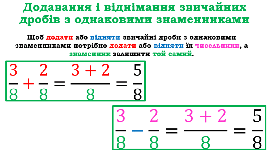 Ось ключові моменти про дроби з однаковими знаменниками: